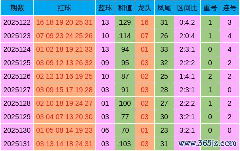 当期红球号码大小比为3:3,三区比为1:3:2,奇偶比为3:3,龙头开出03,凤尾开出31,开出1枚重号14,开出1组连号13,14。蓝球开零散数号码03。